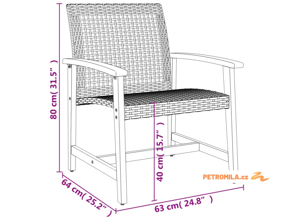 - Materiál: PE ratan, masivní akáciové dřevo, kov