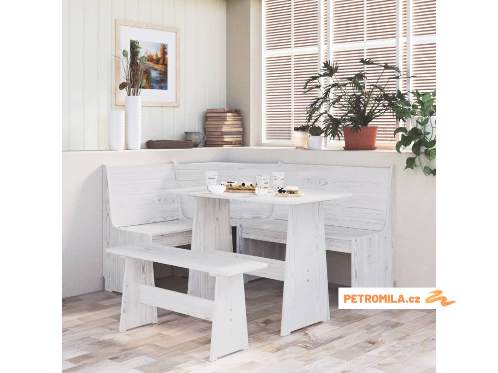 Jídelní set je vyrobený z masivního borového dřeva a vyniká svou dlouhou životností. Opěradlo rohové lavice přispívá k vašemu pohodlí při sezení. Dlouhou lavici lze navíc sestavit na levou i pravou stranu, takže vyhoví vašim konkrétním potřebám. Stůl je ideální pro servírování jídel a nápojů. Je perfektní ke stolování nebo jako skvělé místo k vypracování domácích úkolů nebo různých domácích projektů.