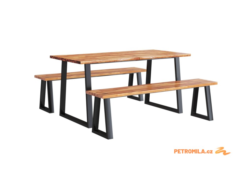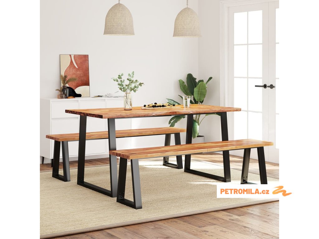 3dílný jídelní set s živou hranou masivní akáciové dřevo