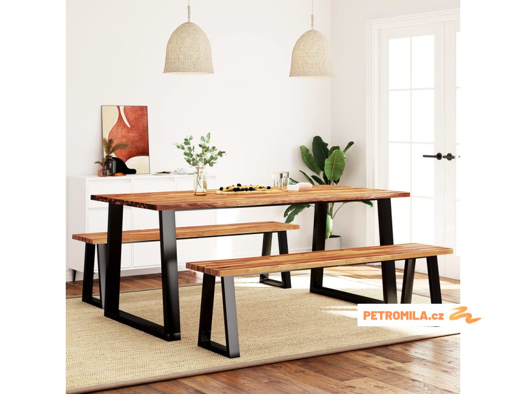 3dílný jídelní set s živou hranou masivní akáciové dřevo