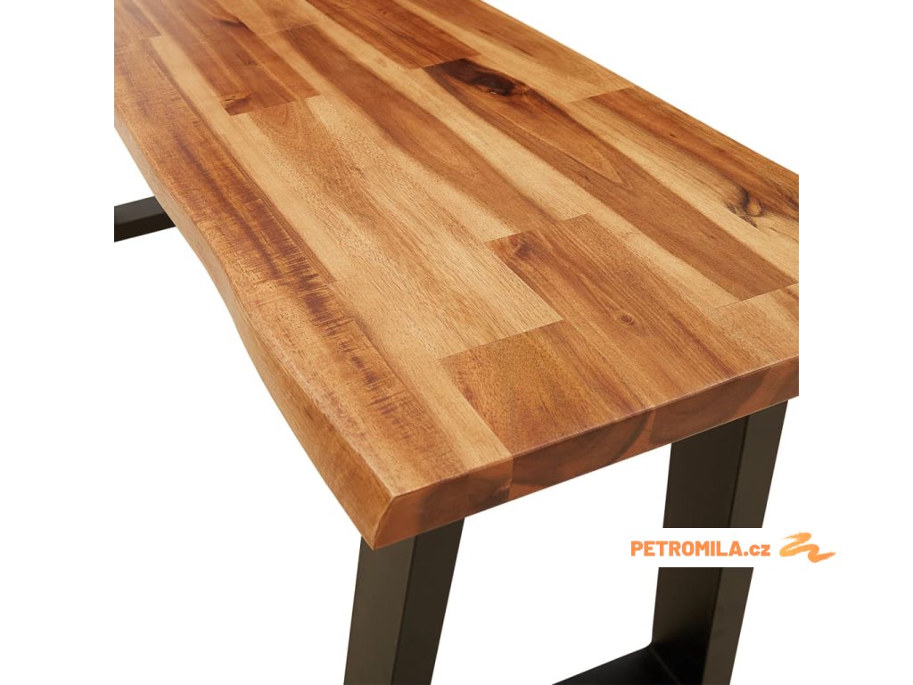 - Masivní akáciové dřevo: Sedák lavice a deska jídelního stolu jsou vyrobeny z masivního akáciového dřeva. Masivní akáciové dřevo je nádherný přírodní materiál. Akáciové dřevo je tropické tvrdé dřevo, které má hustou strukturu a je pevné a odolné.