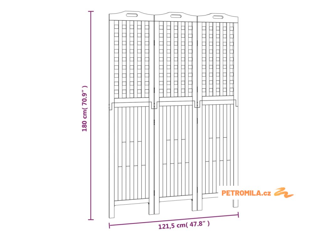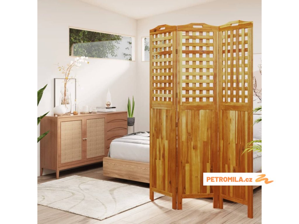 3dílný paraván 121,5 x 2 x 180 cm masivní akáciové dřevo