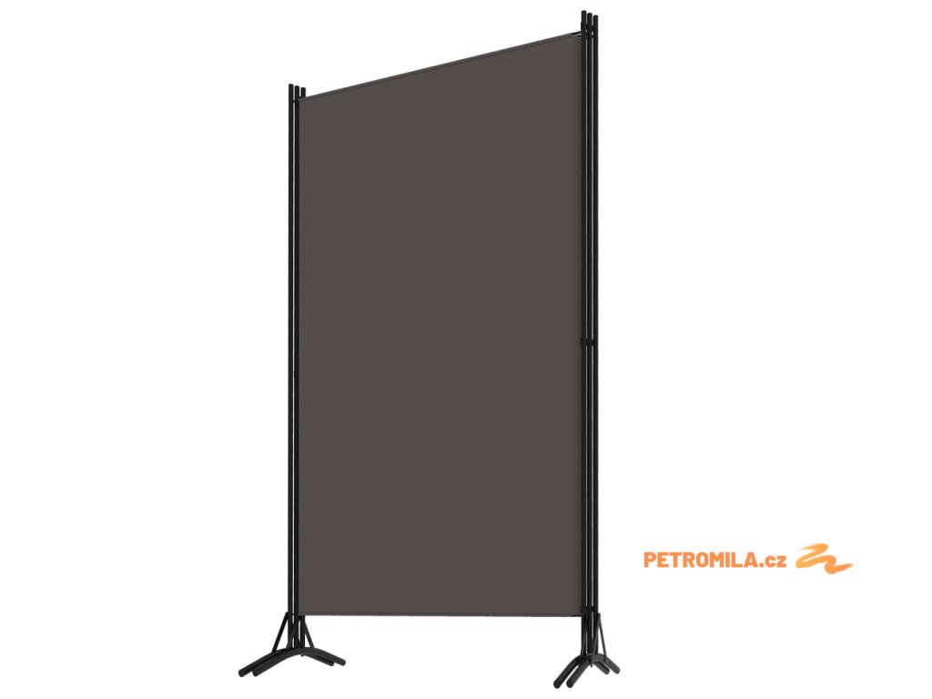 Zástěnu tvoří rám z práškově lakovaného železa a látkové výplně, takže když ji nepoužíváte, můžete ji snadno složit. Stojan s nožkami napomáhá lepší stabilitě.