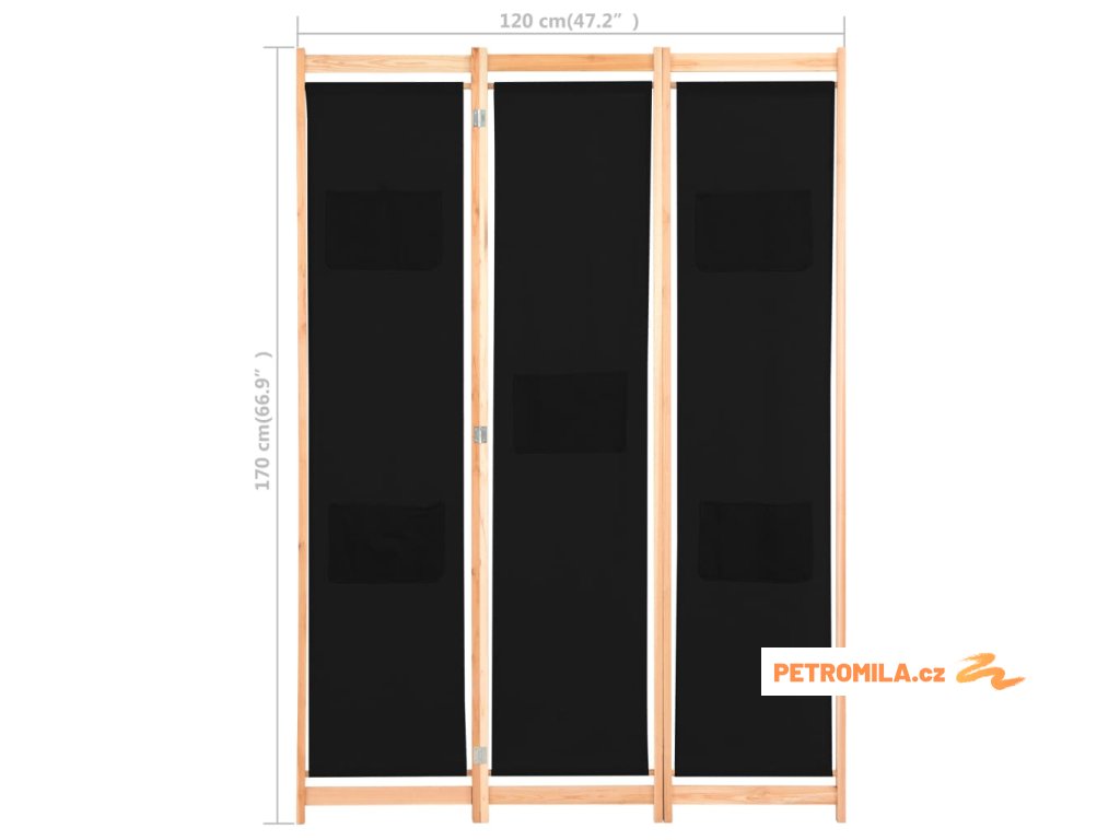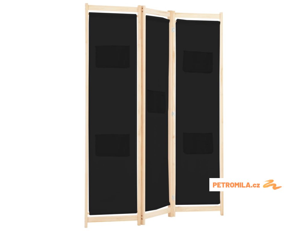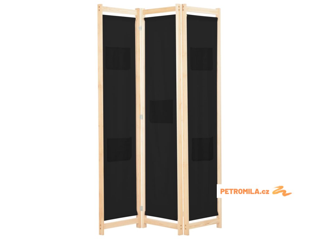 3dílný paraván černý 120 x 170 x 4 cm textil