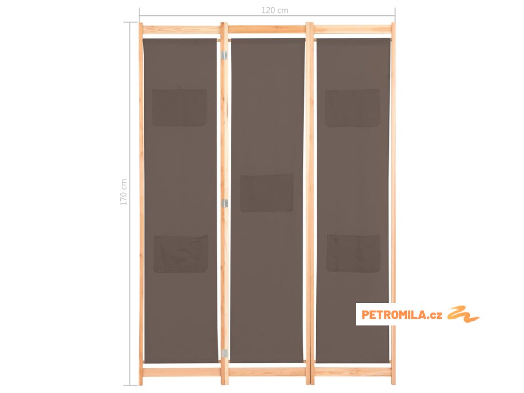 3dílný paraván hnědý 120 x 170 x 4 cm textil