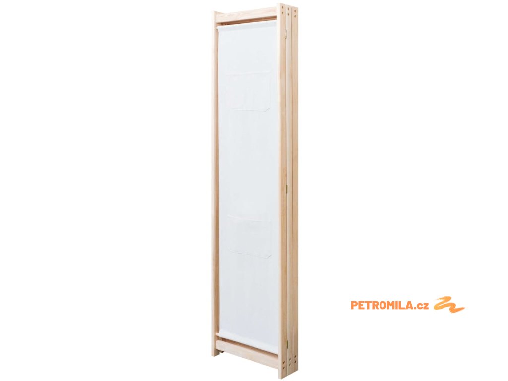 Zástěna je zhotovená z dřevěného rámu a textilních panelů, takže ji můžete snadno složit, kdykoli ji nepoužíváte.