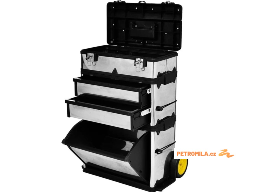 Tento kufr na nářadí je ideální pro každého, kdo potřebuje se svým nářadím často cestovat. Jedná se též o mobilní centralizované místo pro kutilské nářadí nebo řemeslné potřeby. Obsahuje 3 oddělené součásti: tradiční box na nářadí, přihrádku se 2 zásuvkami a velký spodní box.
