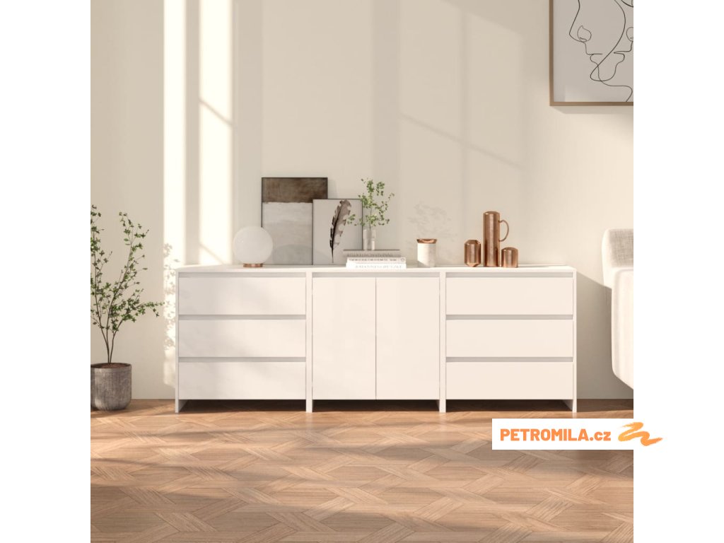 3dílný příborník bílý kompozitní dřevo