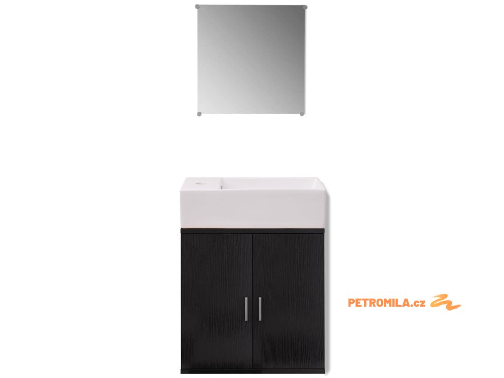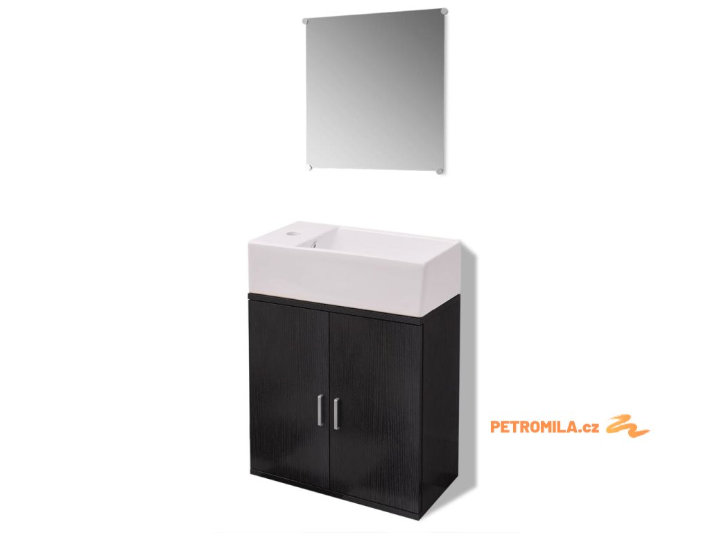 3dílný set koupelnového nábytku a umyvadla černý