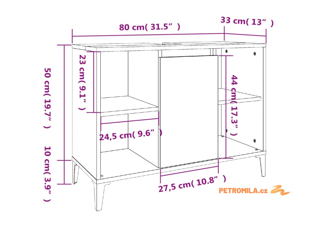 - Rozměry umyvadlové skříňky: 80 x 33 x 60 cm (Š x H x V)