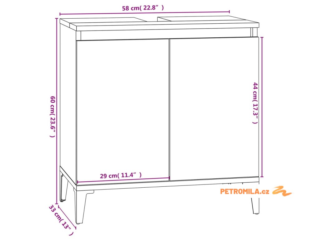 - Rozměry umyvadlové skříňky: 58 x 33 x 60 cm (Š x H x V)