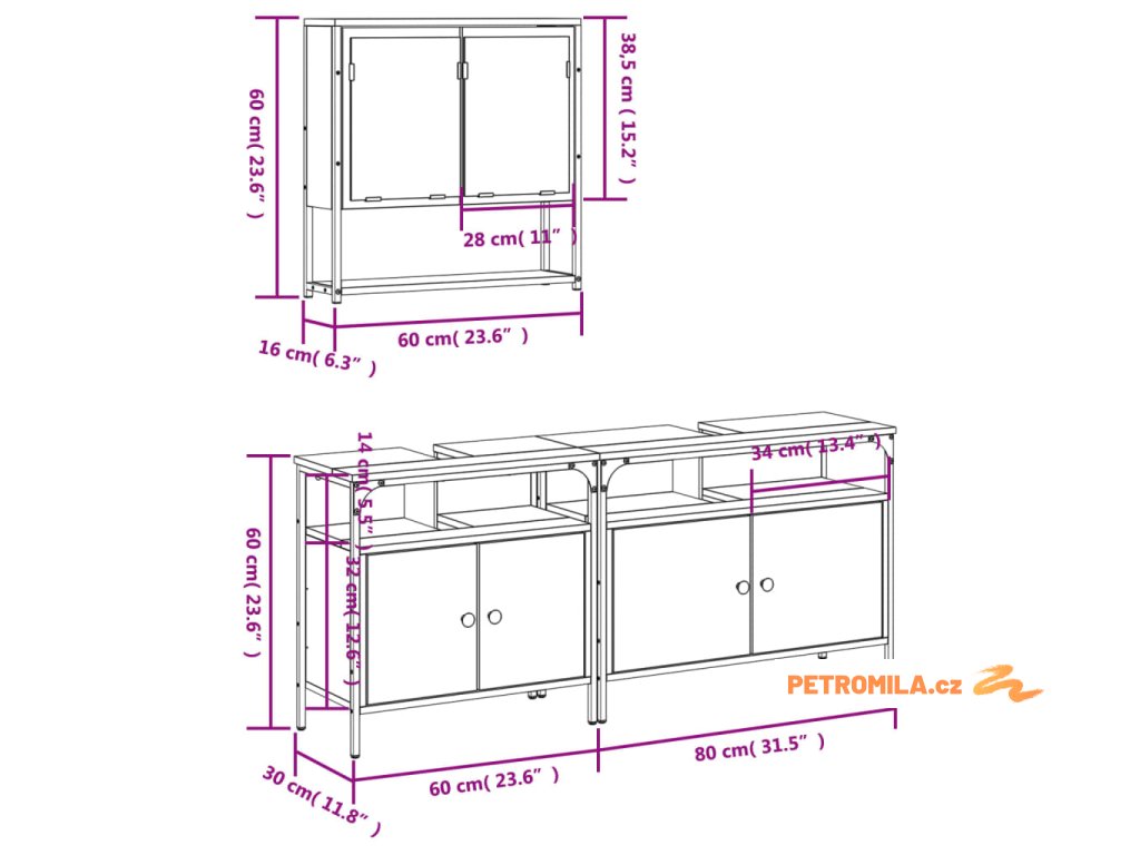 • Rozměry: 80/60 x 30 x 60 cm (D x Š x V)