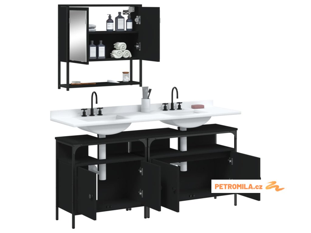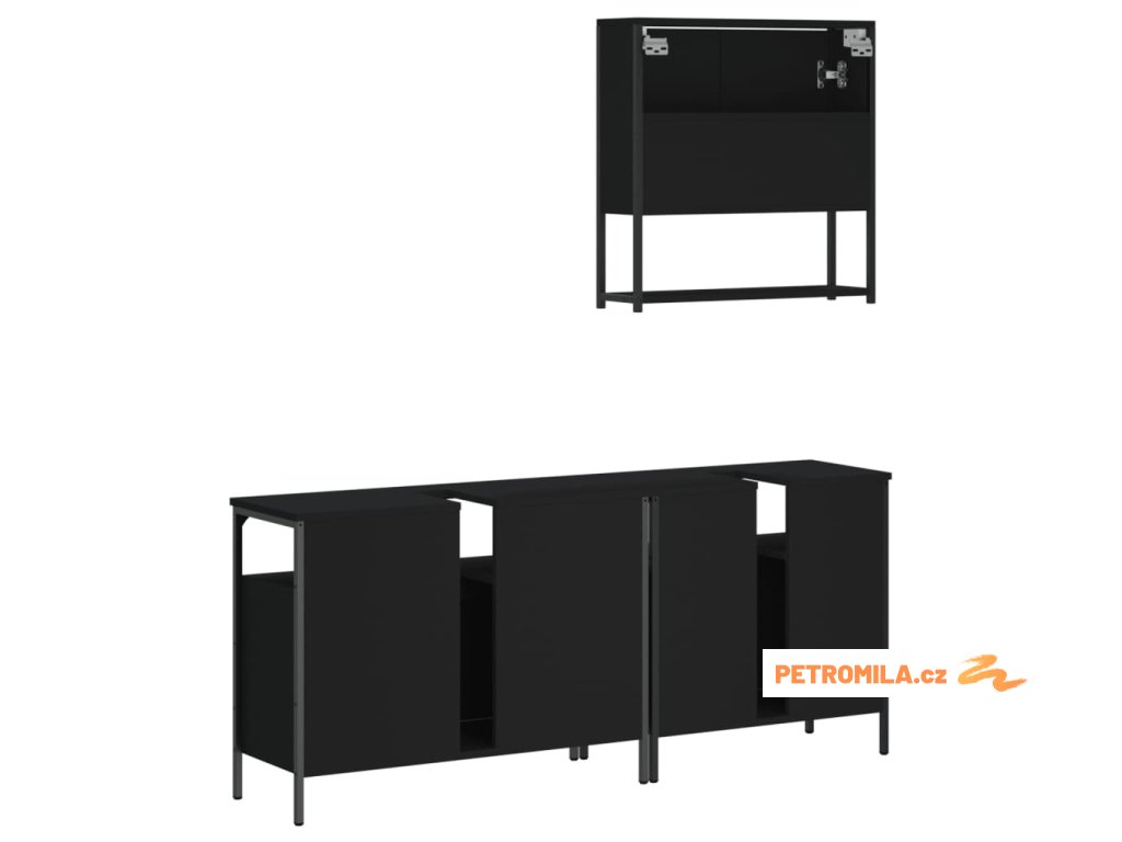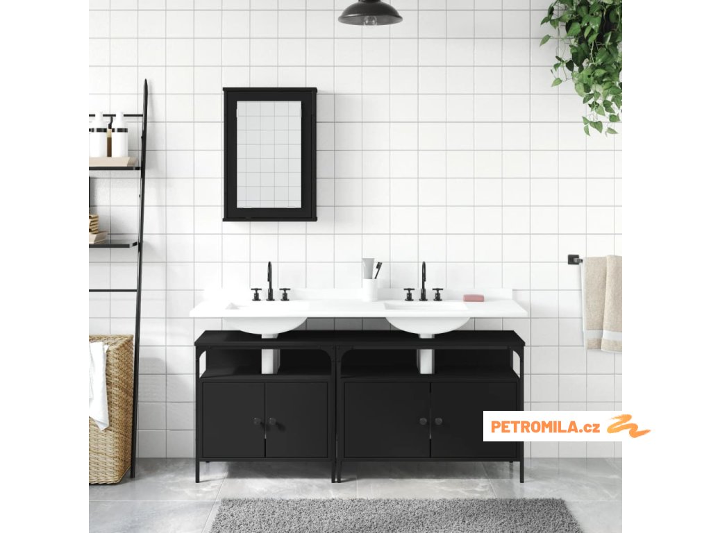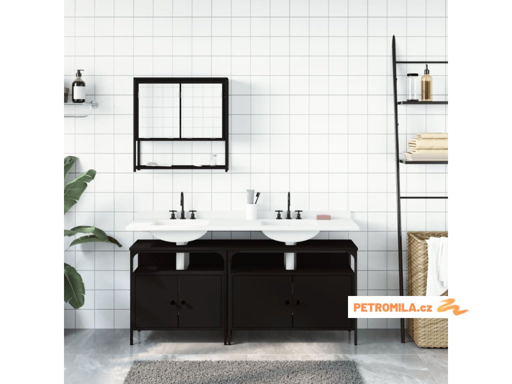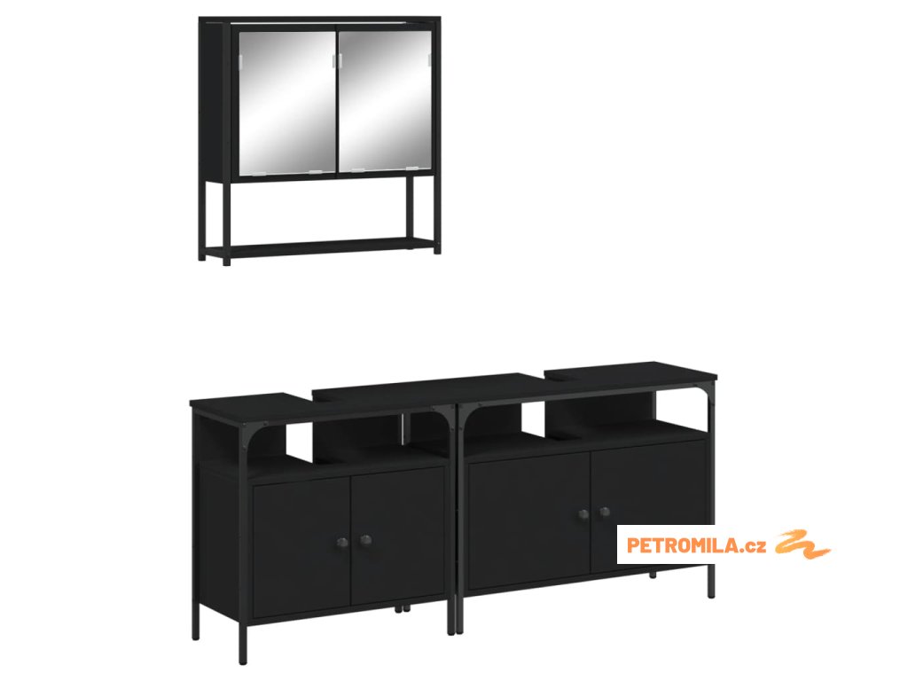 3dílný set koupelnového nábytku černý kompozitní dřevo