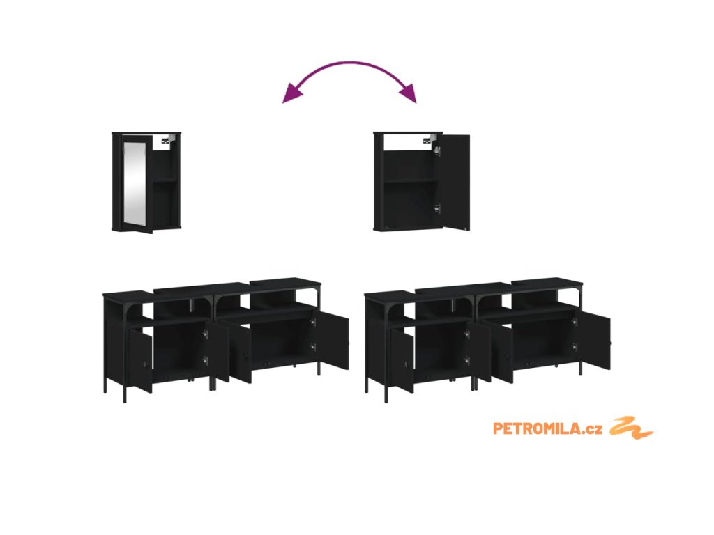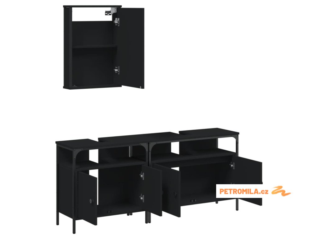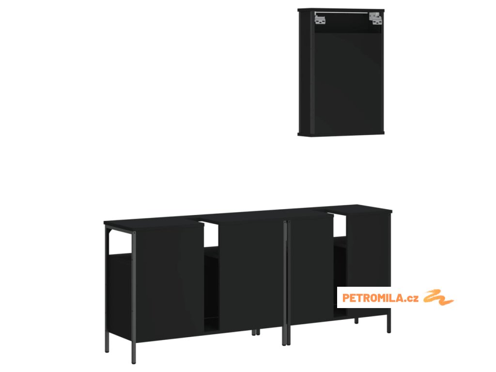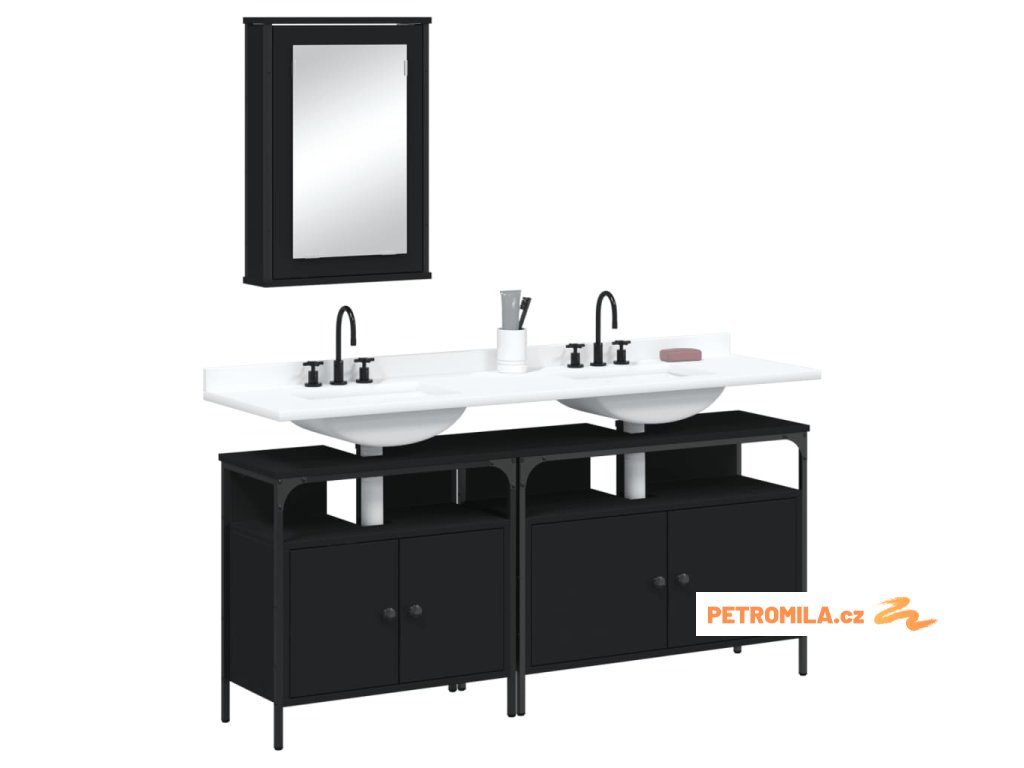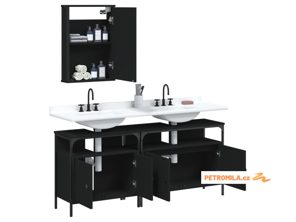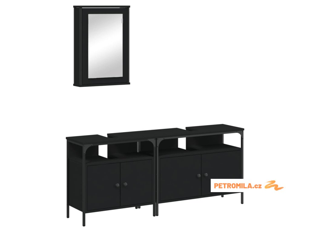 3dílný set koupelnového nábytku černý kompozitní dřevo