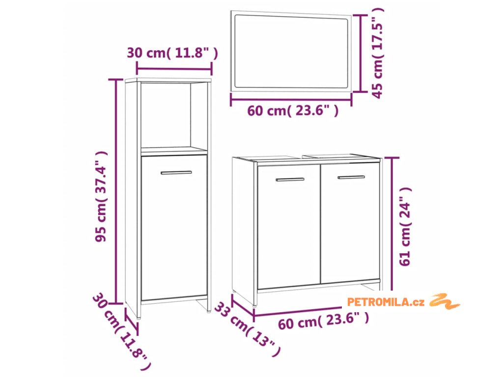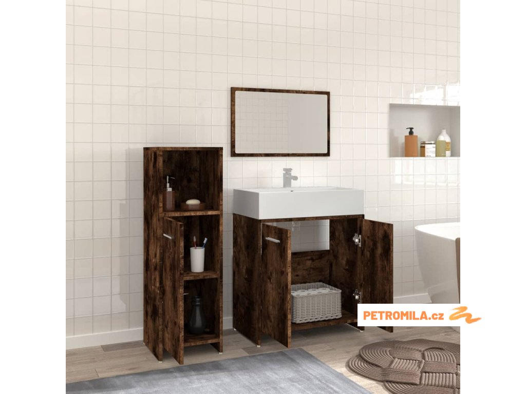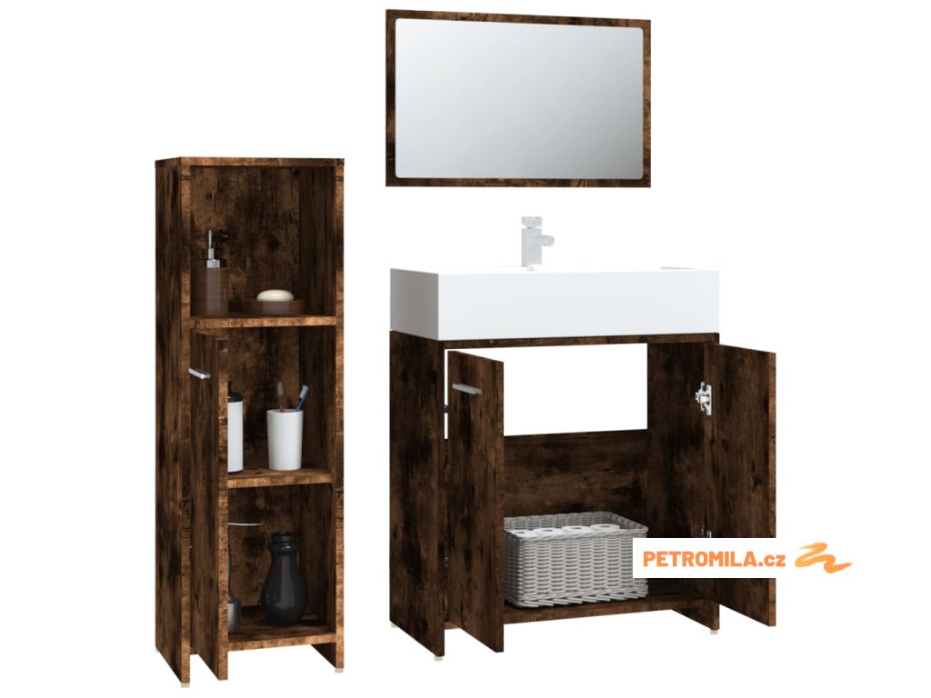 3dílný set koupelnového nábytku kouřový dub kompozitní dřevo