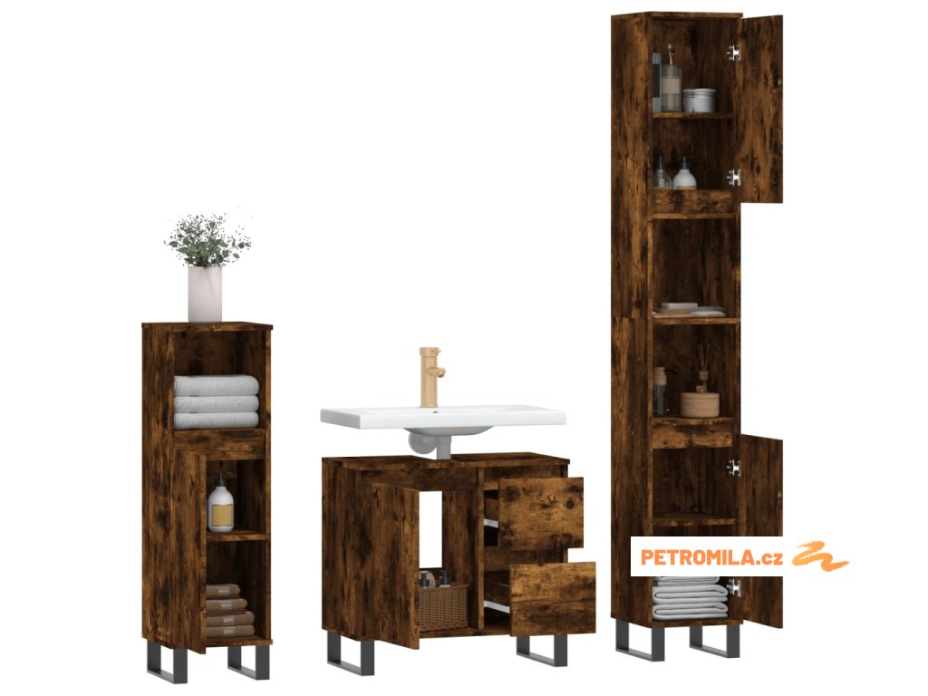 3dílný set koupelnového nábytku kouřový dub kompozitní dřevo