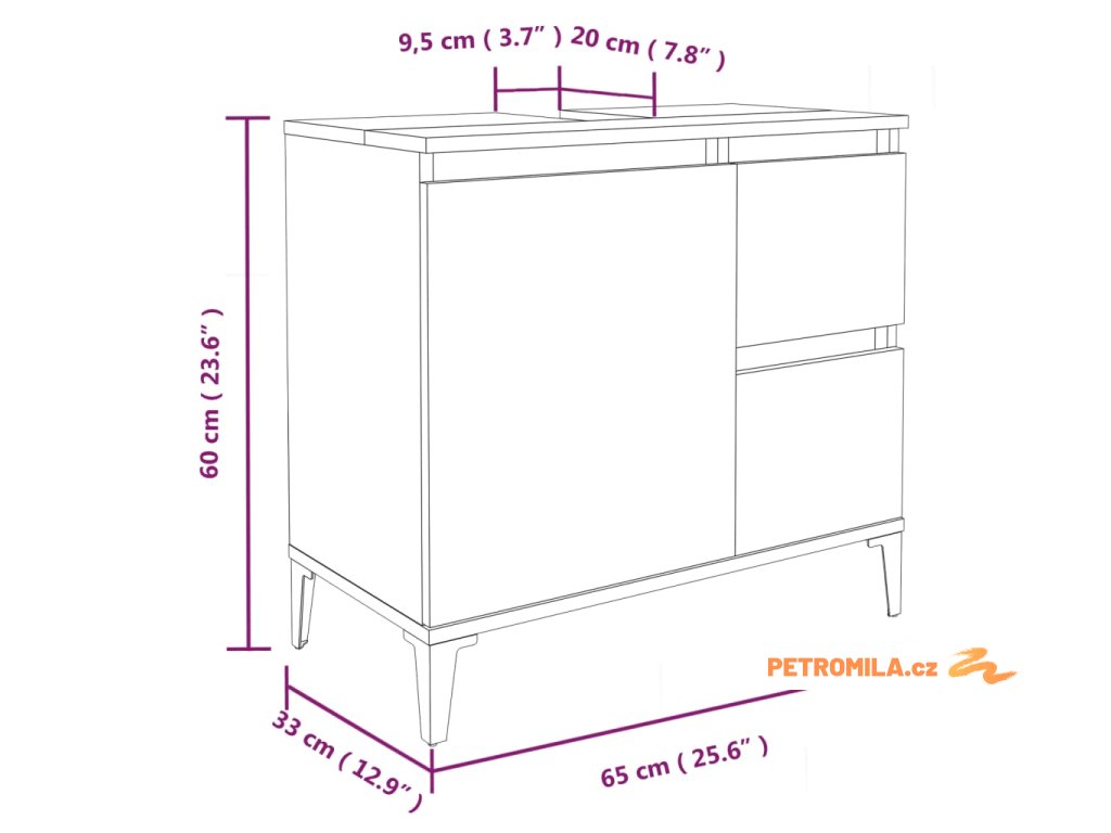 - Rozměry umyvadlové skříňky: 65 x 33 x 60 cm (Š x H x V)