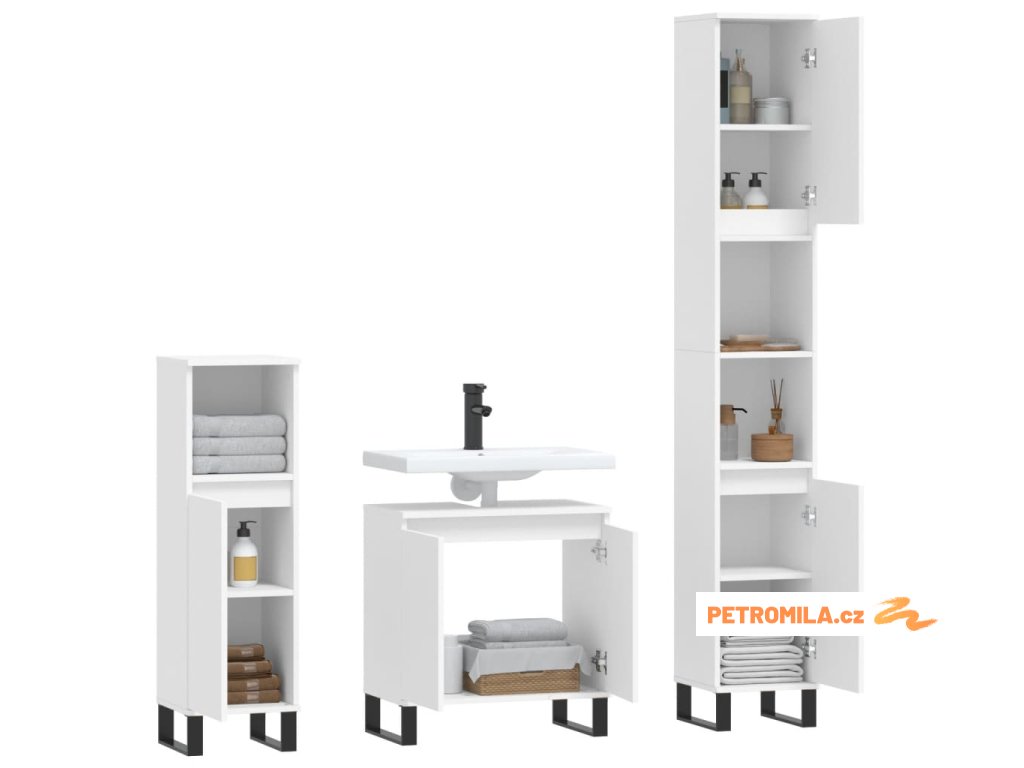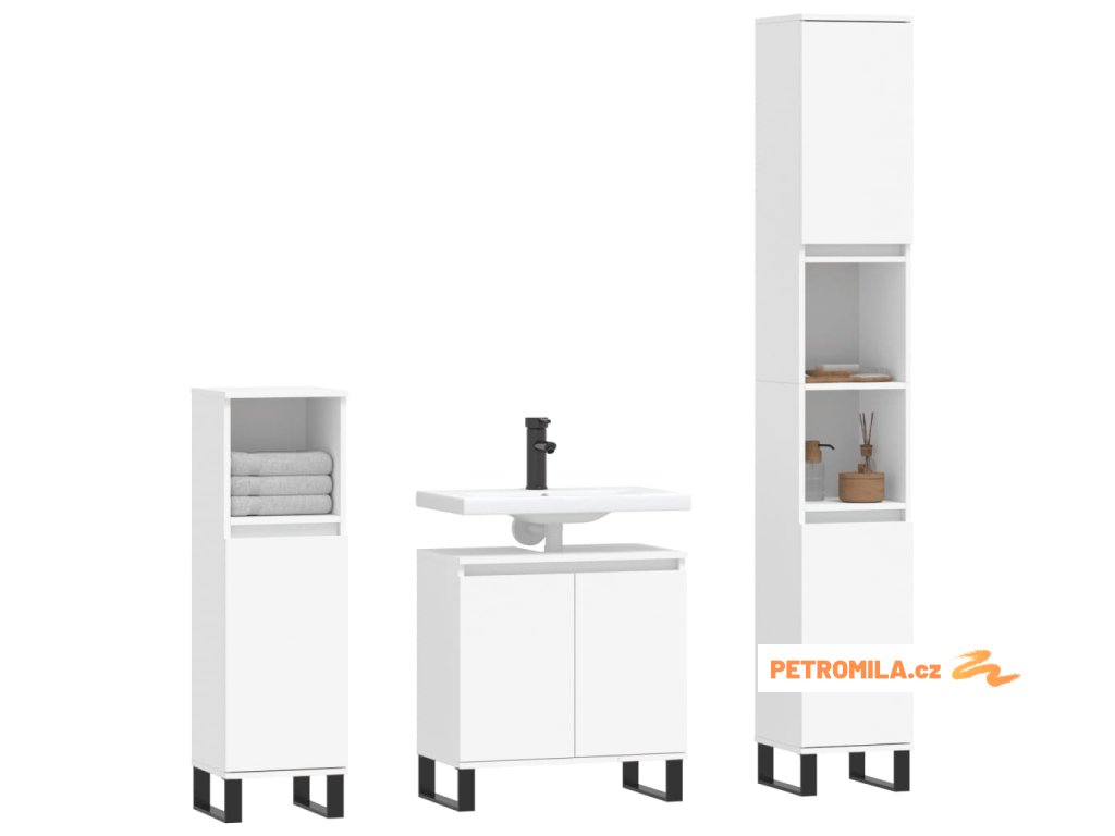 3dílný set koupelnových skříněk bílý kompozitní dřevo