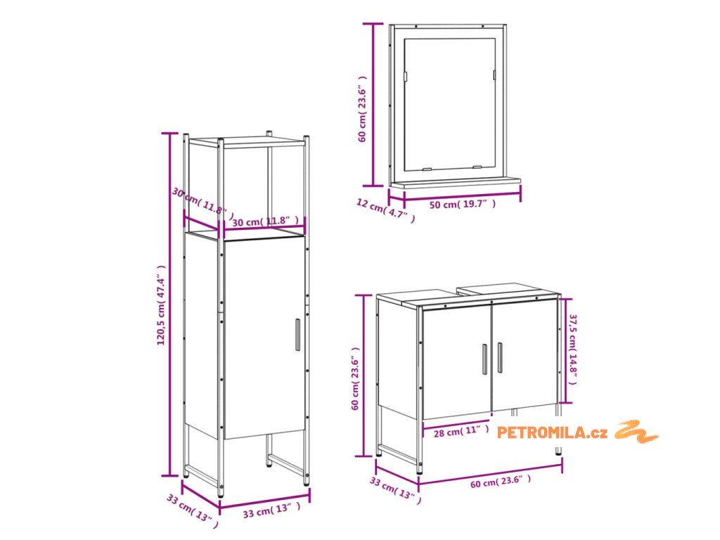 - Rozměry umyvadlové skříňky: 60 x 33 x 60 cm (D x Š x V)