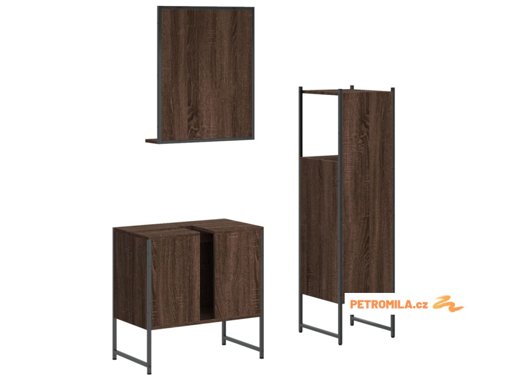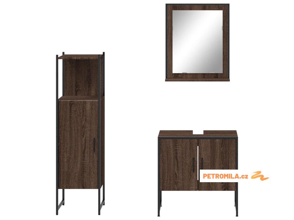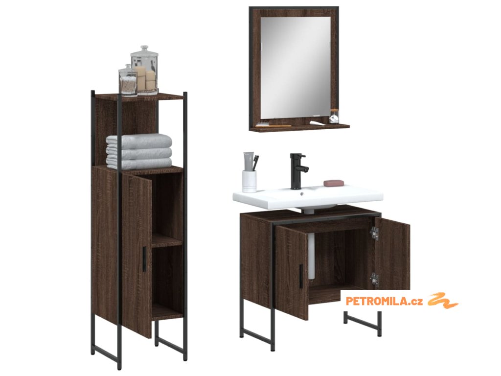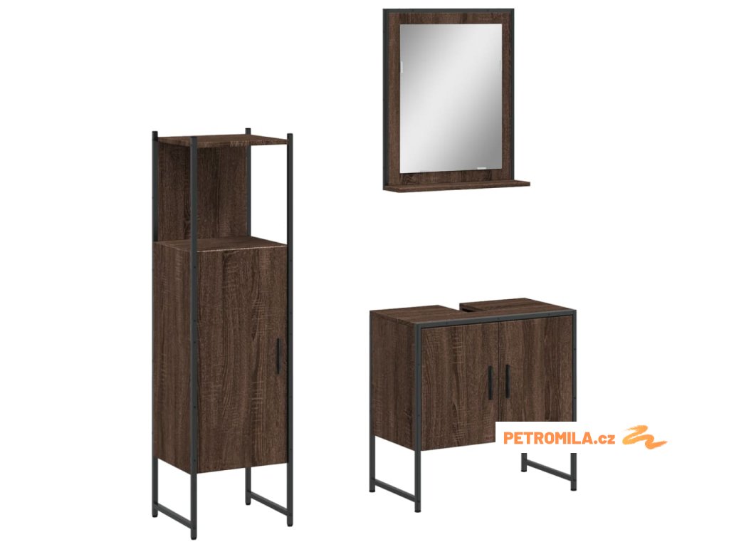 3dílný set koupelnových skříněk hnědý dub kompozitní dřevo