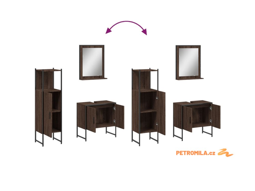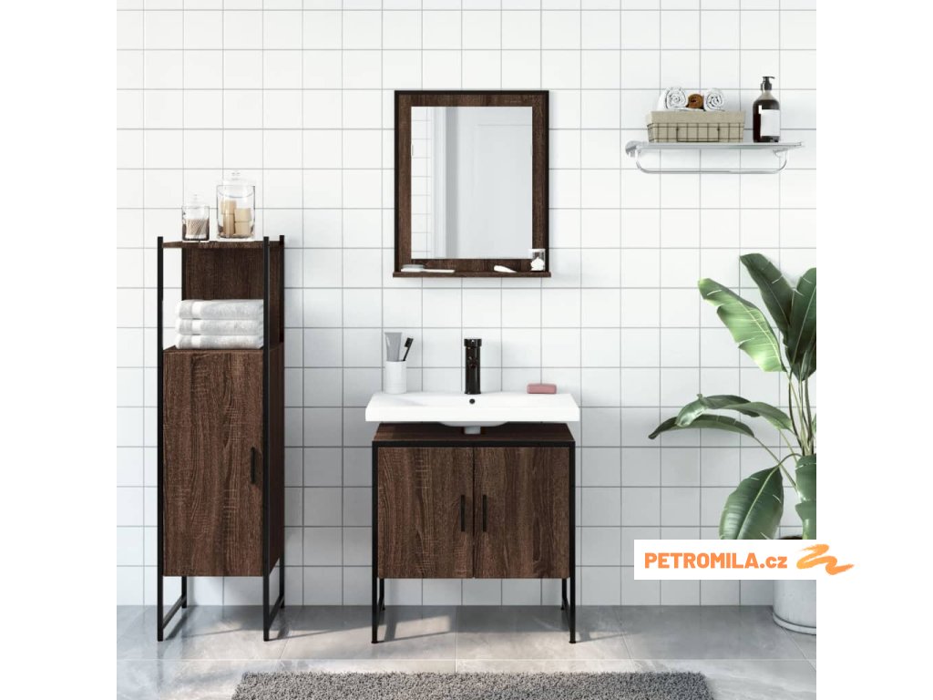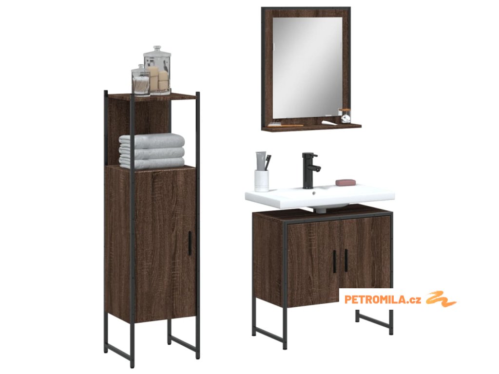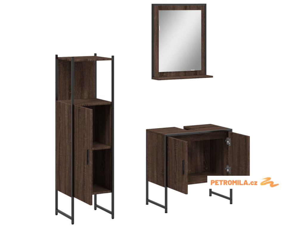3dílný set koupelnových skříněk hnědý dub kompozitní dřevo