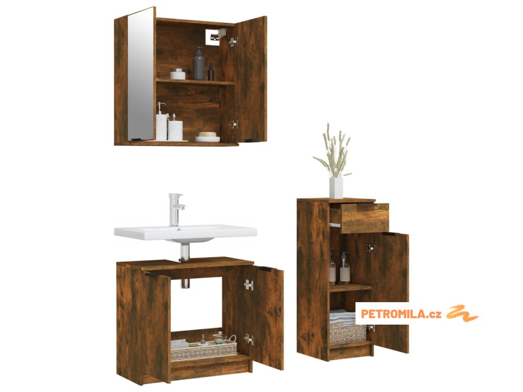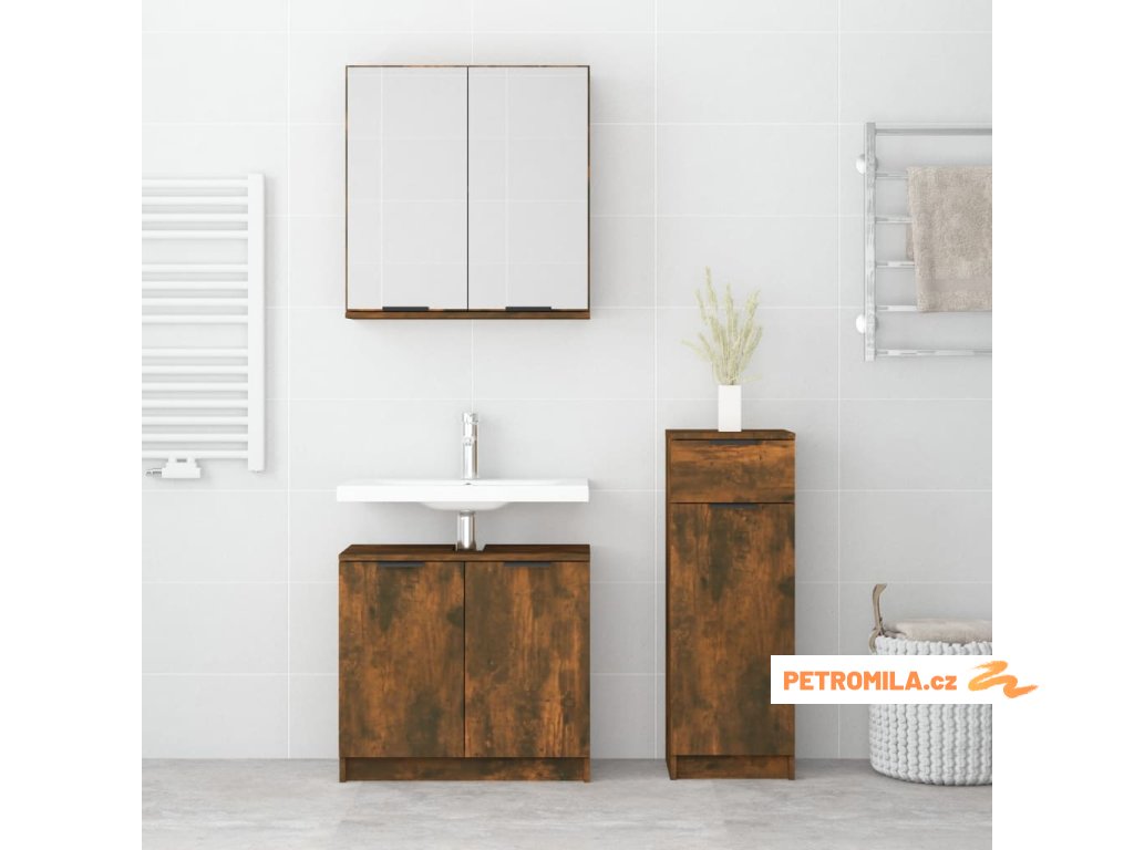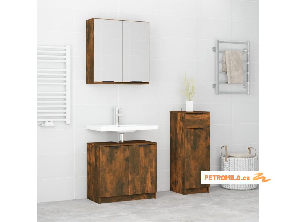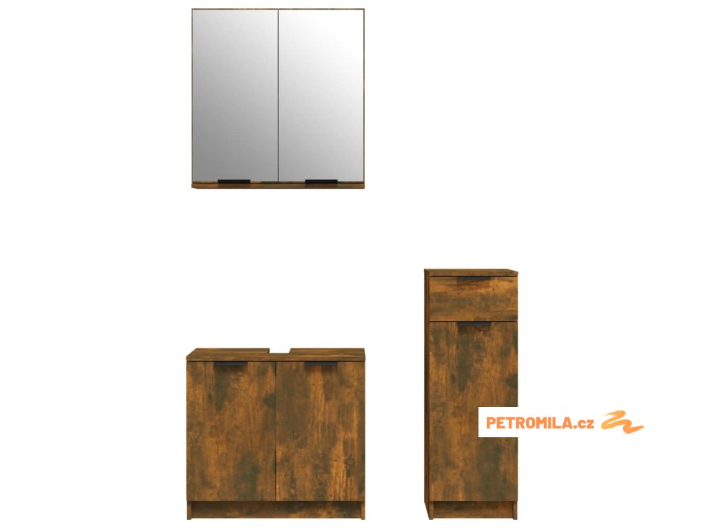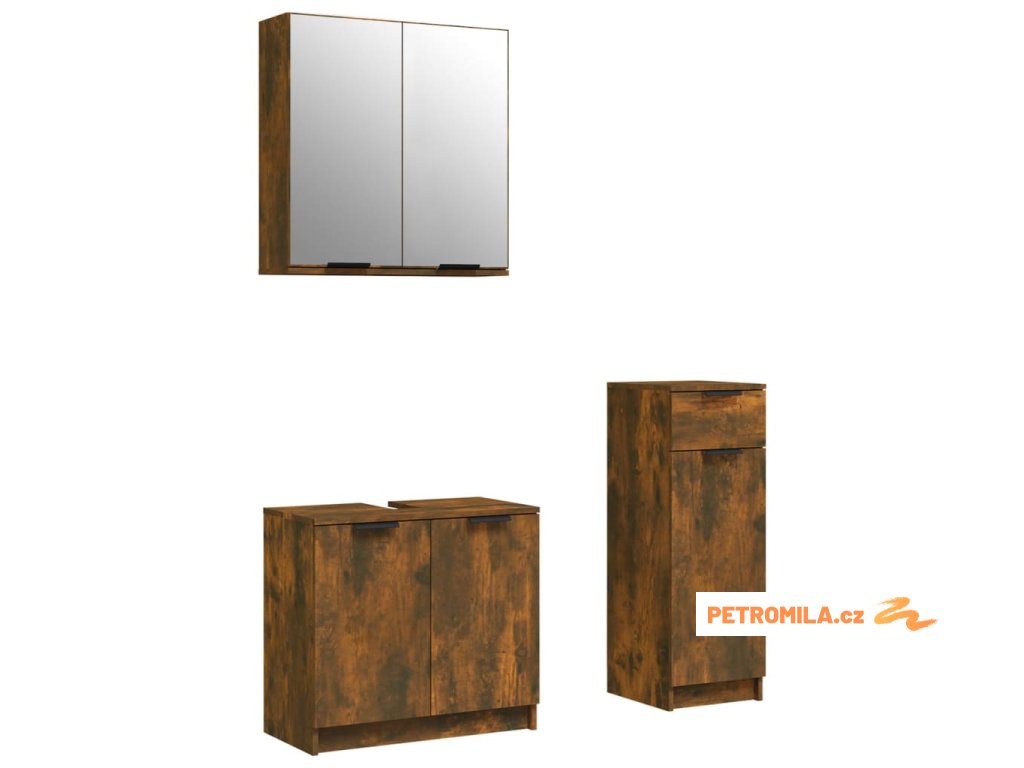 3dílný set koupelnových skříněk kouřový dub kompozitní dřevo