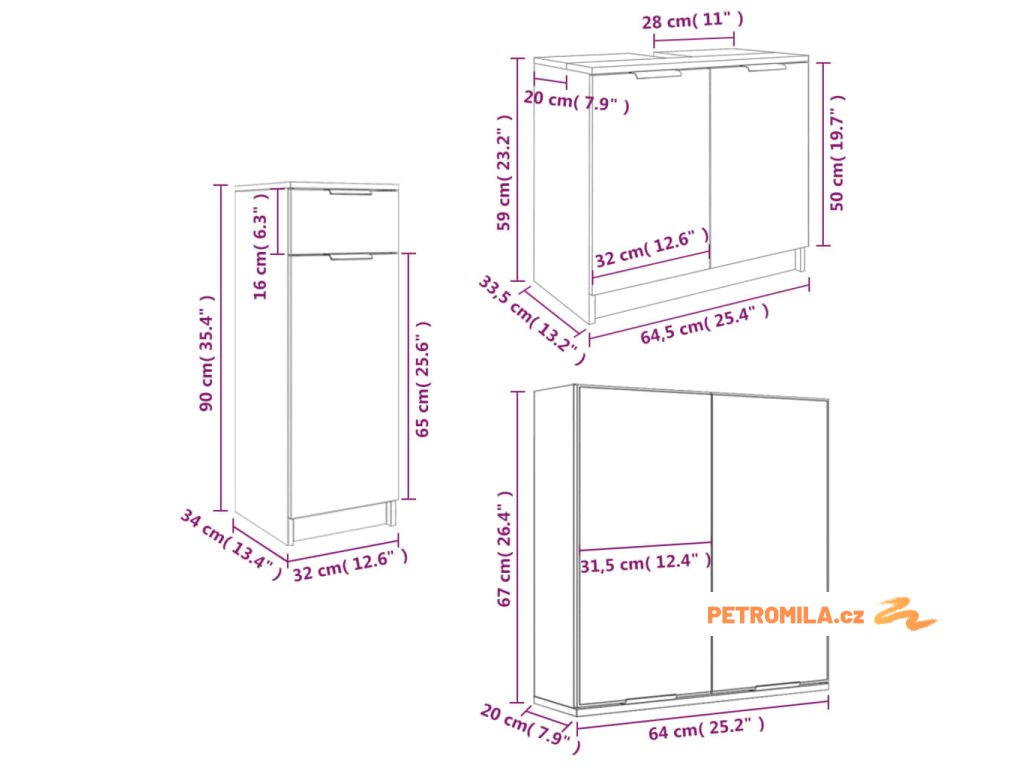 - Rozměry spodní skříňky: 64,5 x 33,5 x 59 cm (D x Š x V)