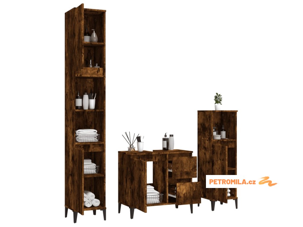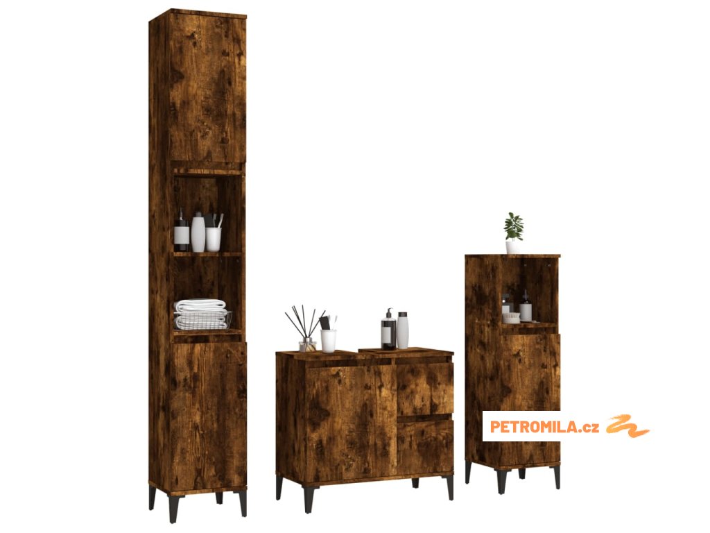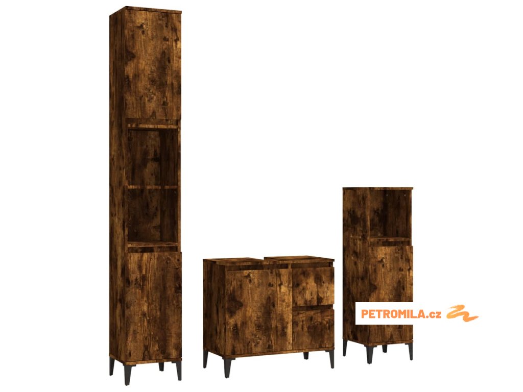 3dílný set koupelnových skříněk kouřový dub kompozitní dřevo