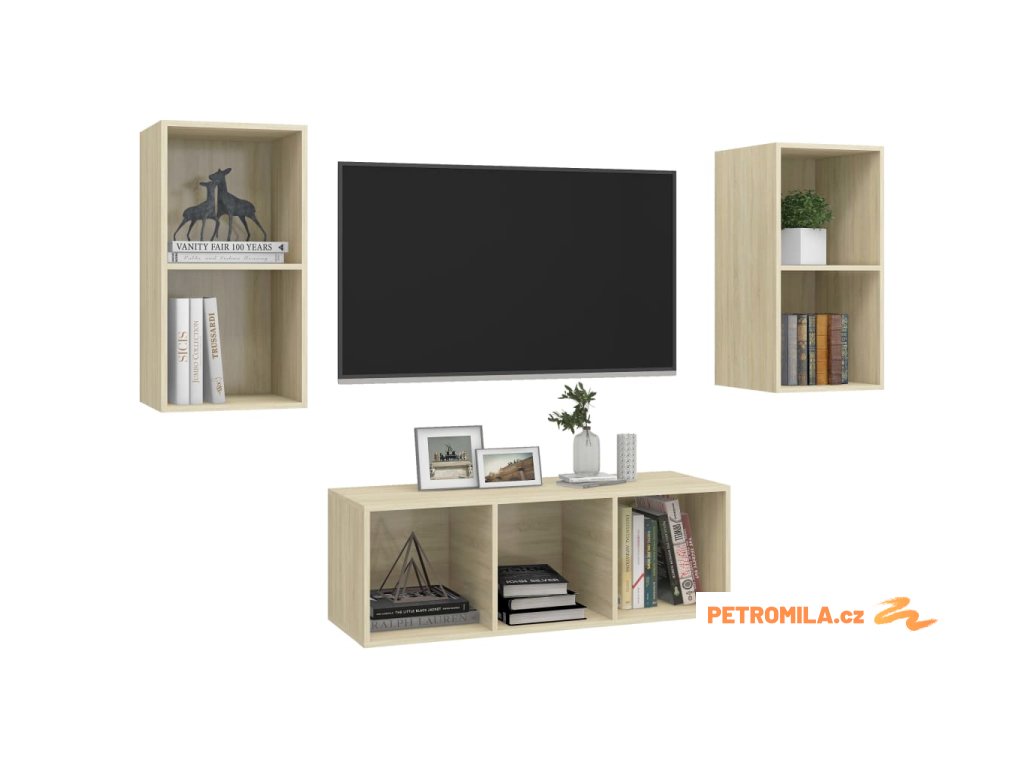 3dílný set TV skříněk dub sonoma kompozitní dřevo