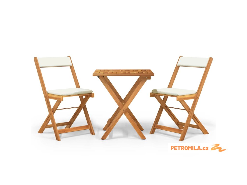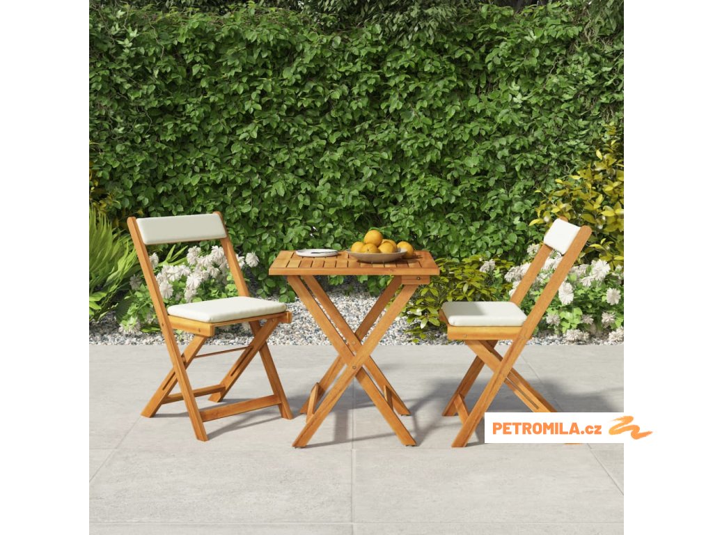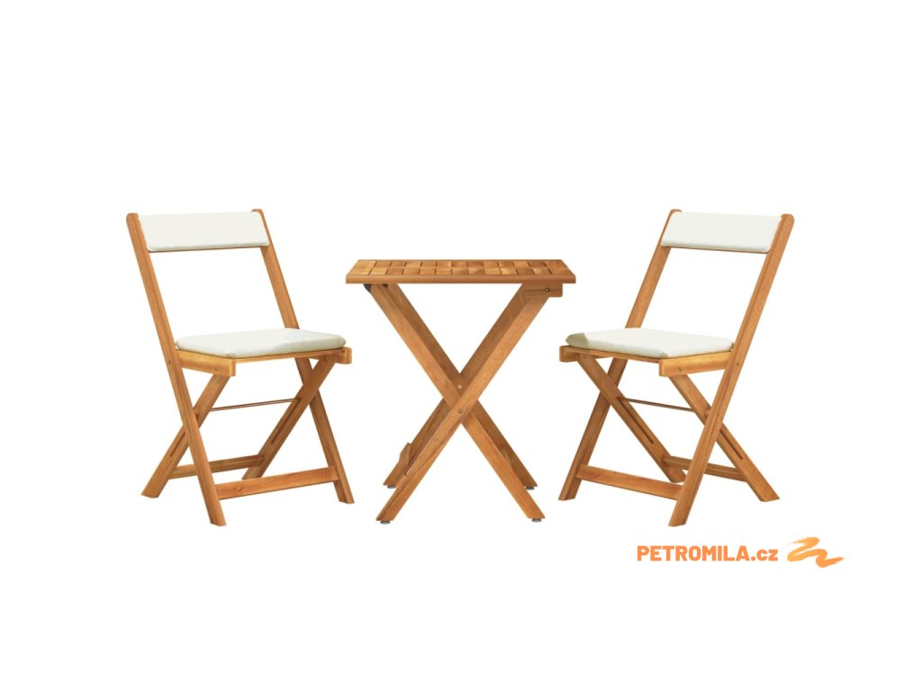 3dílný skládací jídelní set s poduškami masivní akáciové dřevo