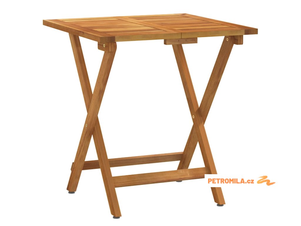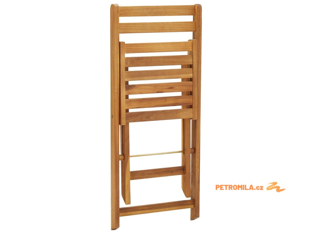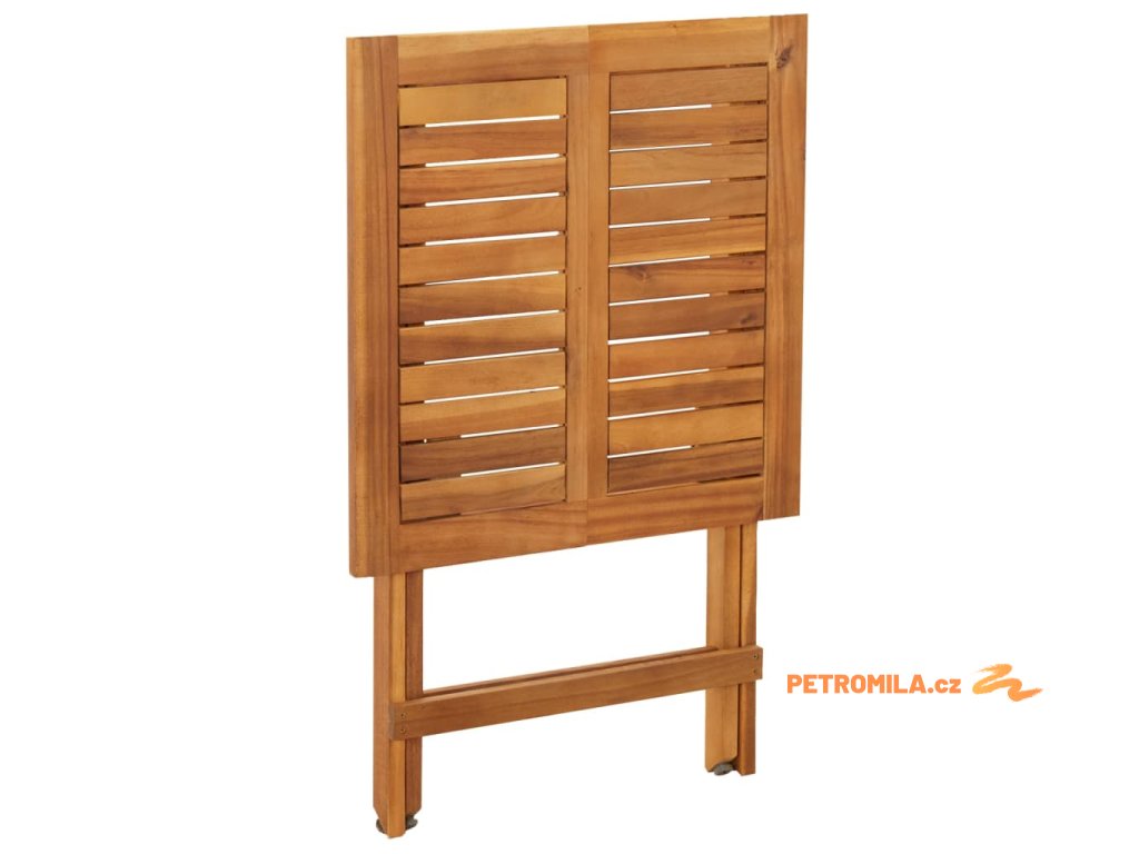 Tento dřevěný skládací bistro set s poduškami, vyrobený z masivního akáciového dřeva, je vynikající volbou pro stolování nebo odpočinek na zahradě.