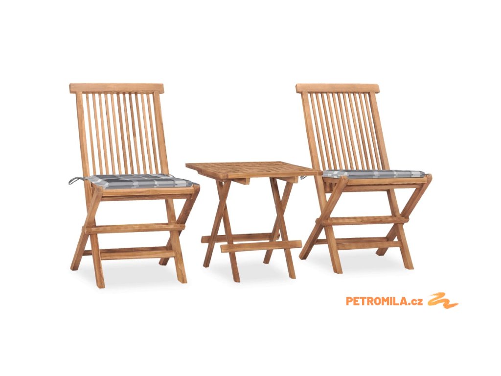 3dílný skládací zahradní jídelní set s poduškou masivní teak