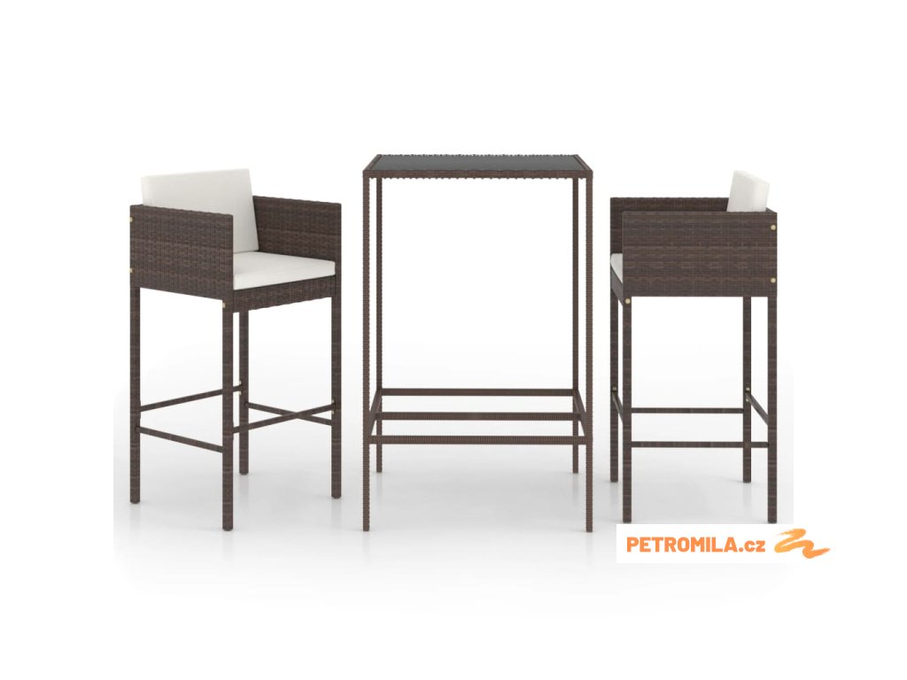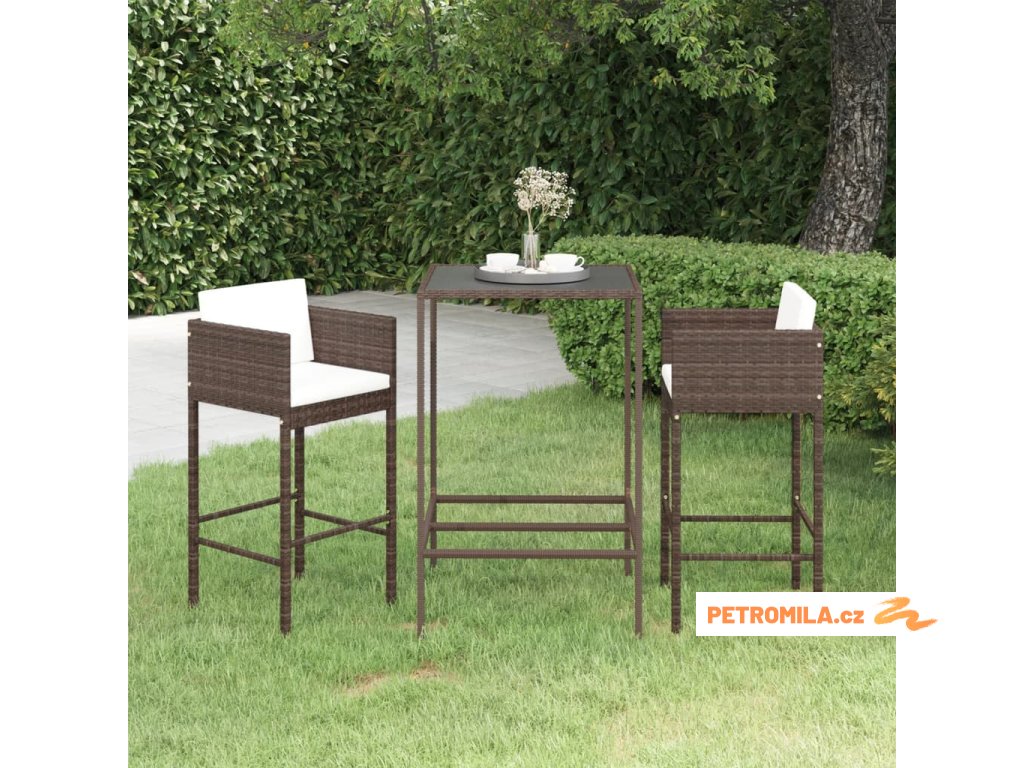 3dílný zahradní barový set s poduškami polyratan hnědý