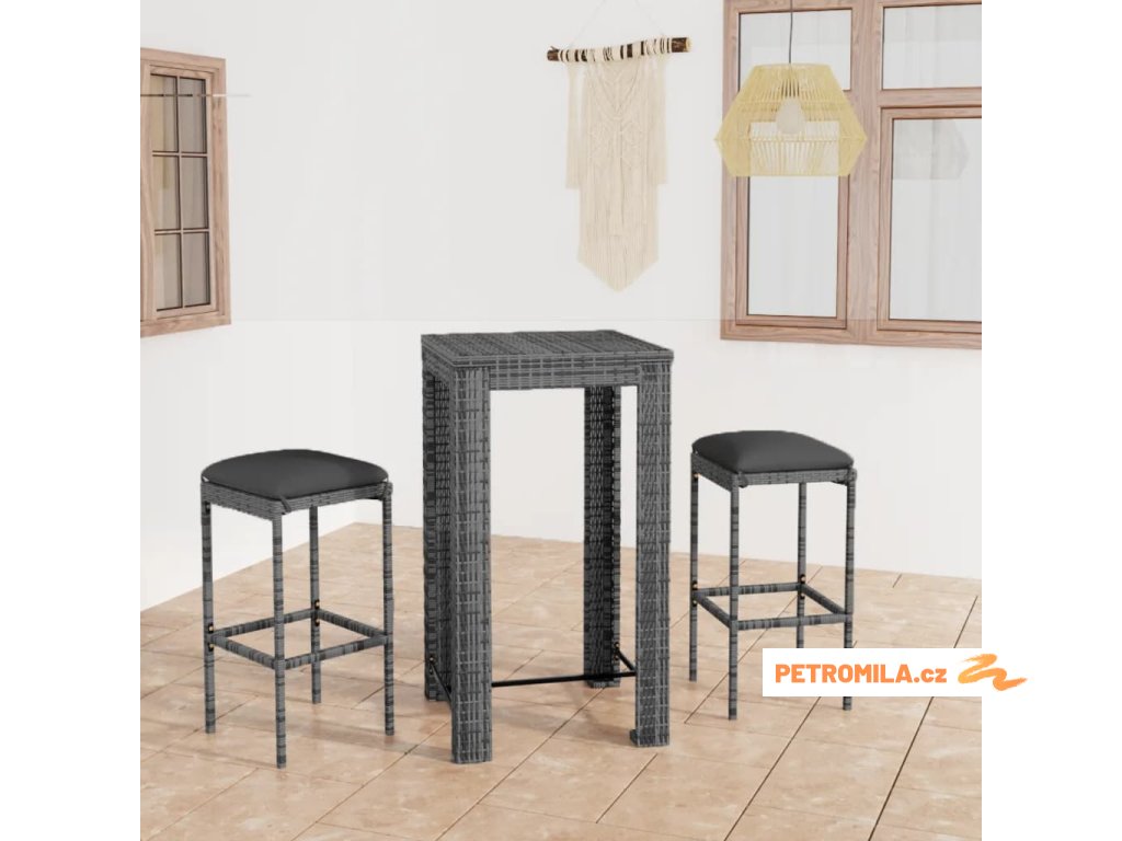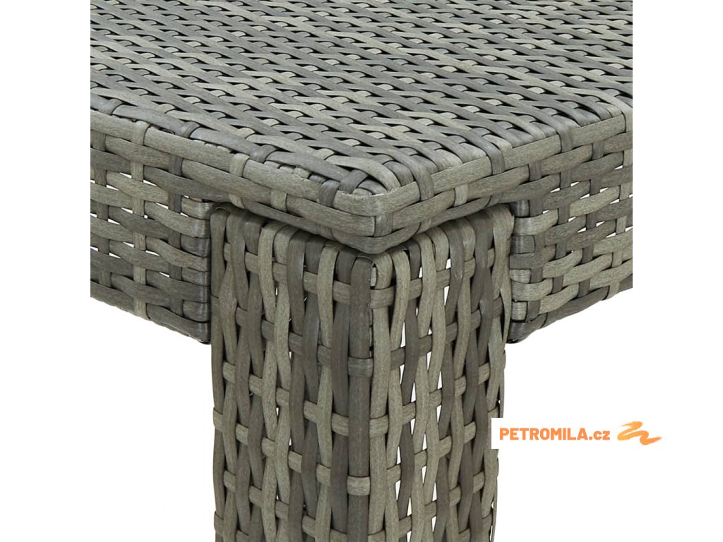 Barový stůl je zpevněný ocelovým rámem s práškovým nástřikem, takže je stabilní a bytelný. Čtvercová deska stolu je ideální pro servírování nápojů, jídla nebo k vystavování dekorativních předmětů. Stoličky mají robustní rám z oceli a jsou vyrobené z klimaticky odolného PE ratanu, který je zárukou stability a umožňuje snadné přenášení. Poduška a opěrka na nohy přispívají k většímu pohodlí při sezení na stoličce. Polyesterový potah na podušky se skrytým zipem usnadňuje čištění.