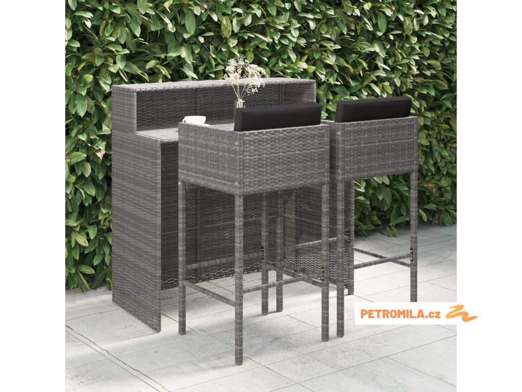 Venkovní barový set je vyrobený z PE ratanu, který výborně vzdoruje vodě i dalším klimatickým vlivům, navíc se snadno čistí, hodně toho vydrží a můžete ho klidně používat každý den. Rám z práškově lakované oceli přidává stolu i stoličkám na odolnosti a prodlužuje jejich životnost. Dvouúrovňová horní část poskytuje další úložný prostor pro vaše věci, abyste je měli pěkně po ruce. Opěrky na nohy a podušky dodávají židlím další rozměr pohodlí. Nábytek se vyznačuje lehkou konstrukcí, takže můžete všechny díly bez námahy přesouvat z místa na místo.