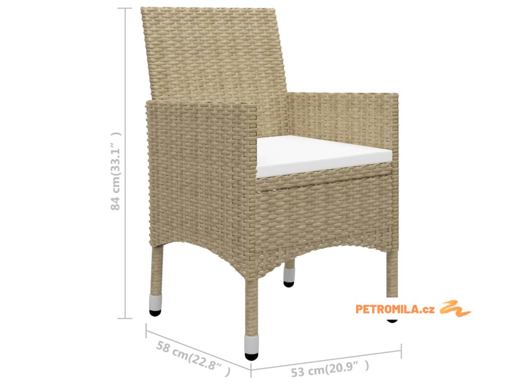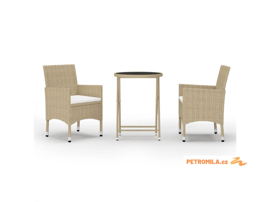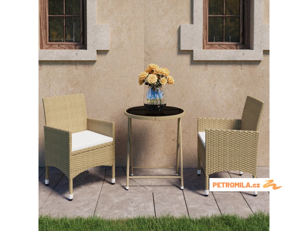 3dílný zahradní bistro set polyratan a tvrzené sklo béžový