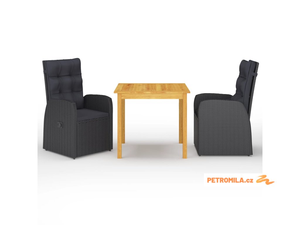 3dílný zahradní jídelní set černý