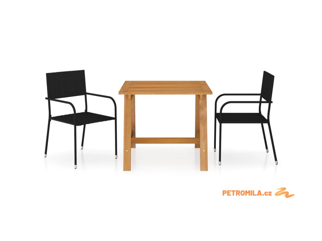 Jídelní stůl je zhotovený z masivního akáciového dřeva s olejovaným povrchem, takže je stabilní, odolný a nenáročný na údržbu. Zahradní židle mají rám z práškově lakované oceli, opletený PE ratanem, který výborně vzdoruje klimatickým vlivům. Dlouho vám proto vydrží a snadno je očistíte. Jídelní židle mají také lehkou konstrukci a lze je stohovat, aby vám zbytečně nepřekážely, když je zrovna nepoužíváte.