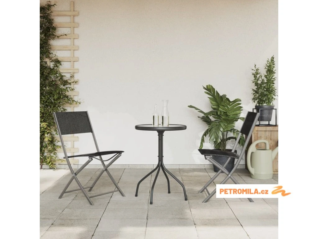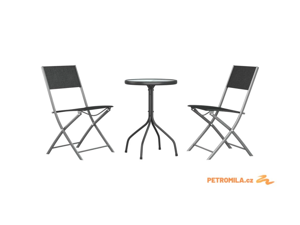 3dílný zahradní jídelní set černý ocel