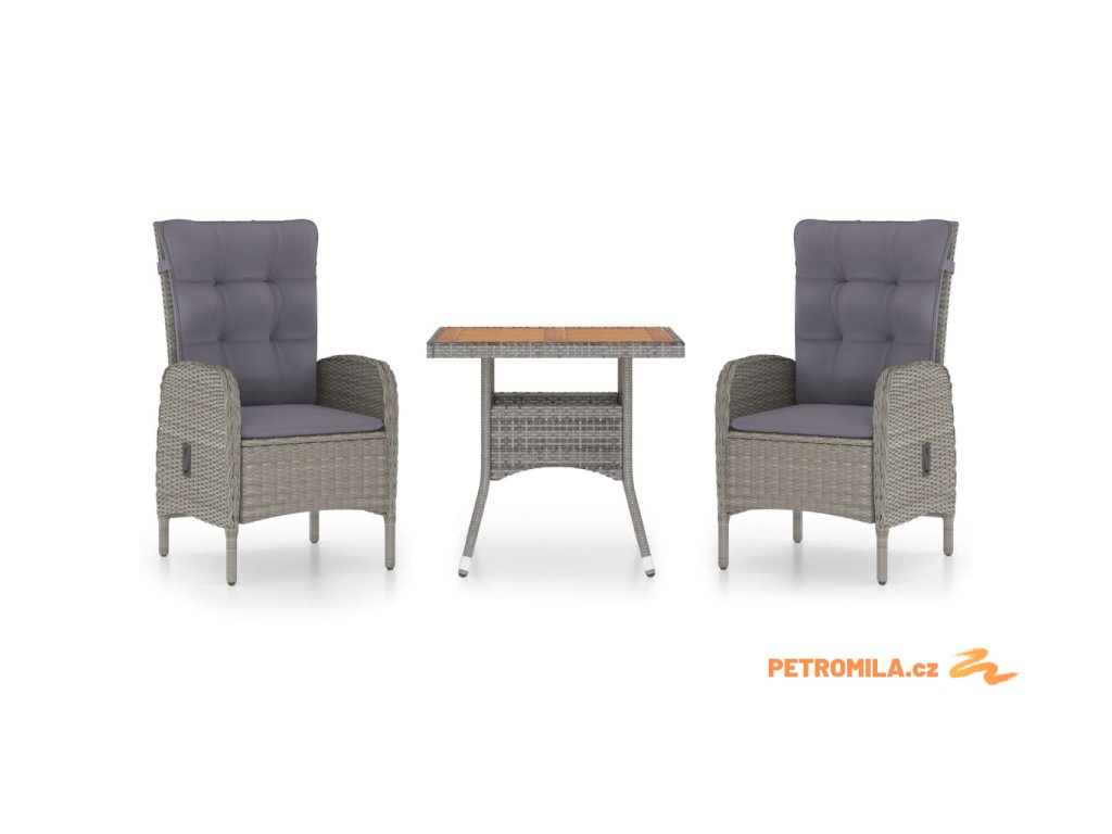 3dílný zahradní jídelní set polyratan a akáciové dřevo šedý