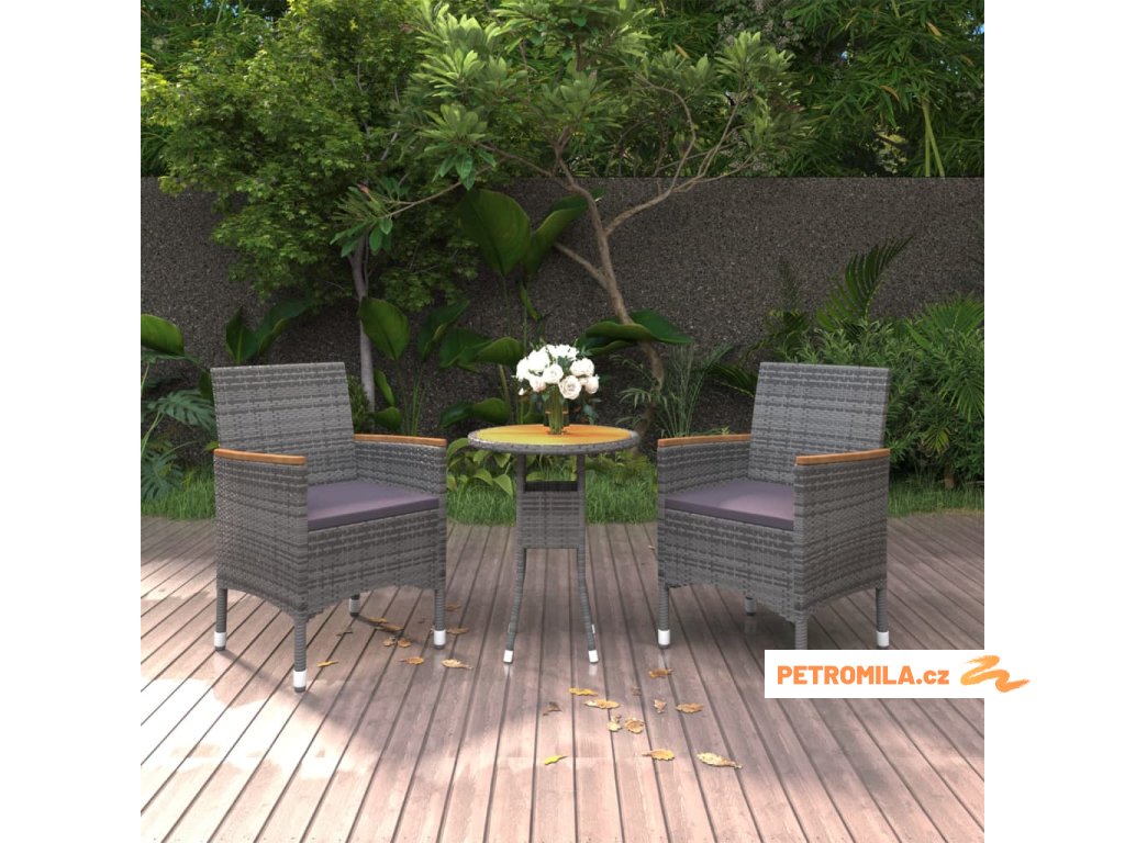 3dílný zahradní jídelní set polyratan šedý