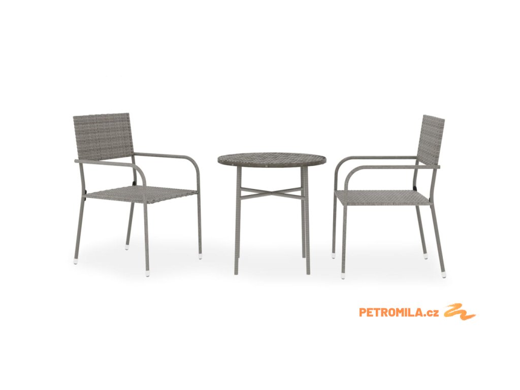 3dílný zahradní jídelní set polyratan šedý