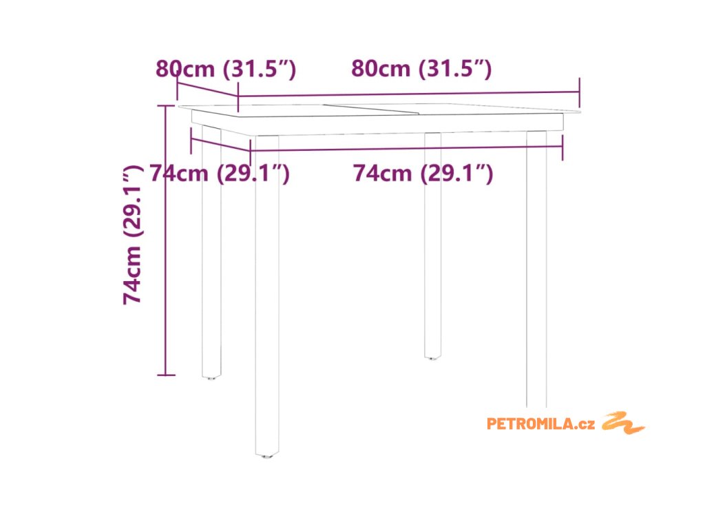 - Rozměry stolu: 80 x 80 x 74 cm (D x Š x V)