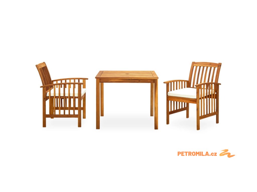 3dílný zahradní jídelní set s poduškami masivní akáciové dřevo