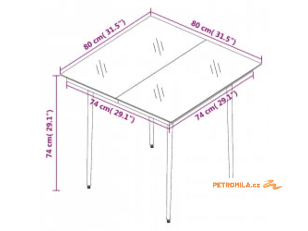 - Rozměry stolu: 80 x 80 x 74 cm (D x Š x V)