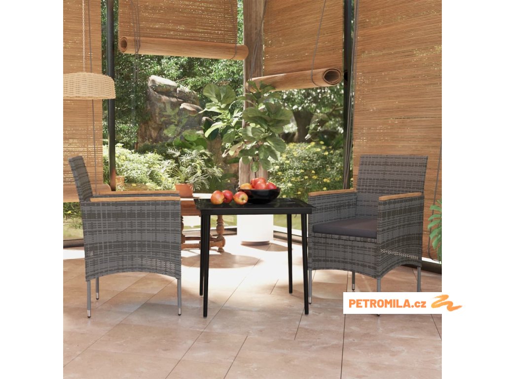 Stůl a židle mají rám z práškově lakované oceli, jsou tedy robustní, stabilní a skvěle se hodí pro každodenní venkovní použití. Židle jsou zhotoveny z voděodolného PE ratanu, takže se snadno čistí a jsou odolné. Hladkou skleněnou desku stolu jednoduše očistíte vlhkým hadříkem a výborně vám poslouží k servírování občerstvení a nápojů či k vystavení různých dekorativních předmětů.