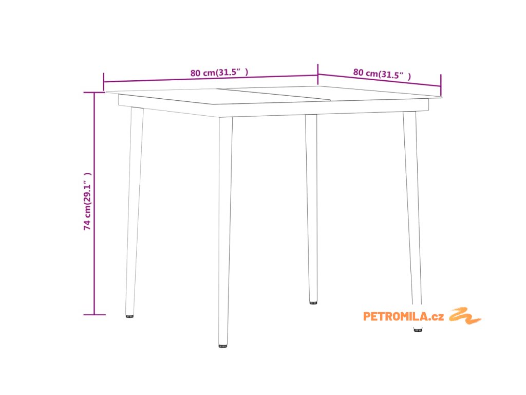 - Rozměry stolu: 80 x 80 x 74 cm (D x Š x V)