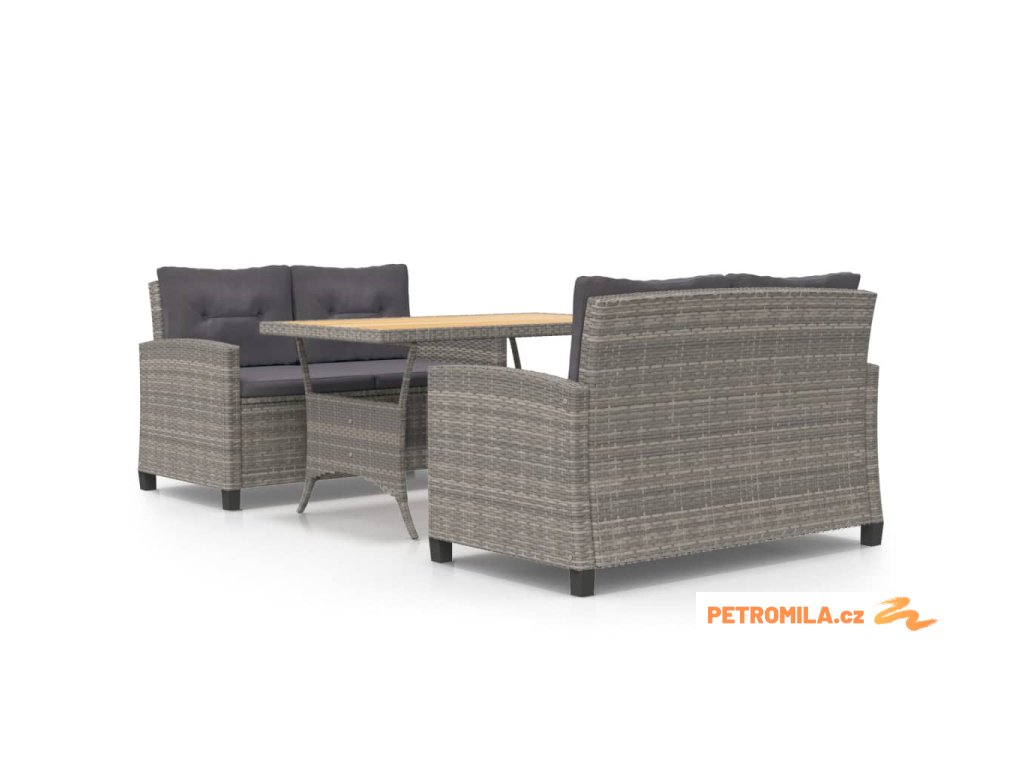 3dílný zahradní jídelní set s šedými poduškami polyratan
