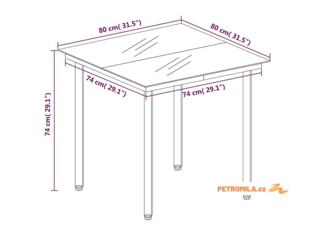 - Rozměry: 80 x 80 x 74 cm (D x Š x V)