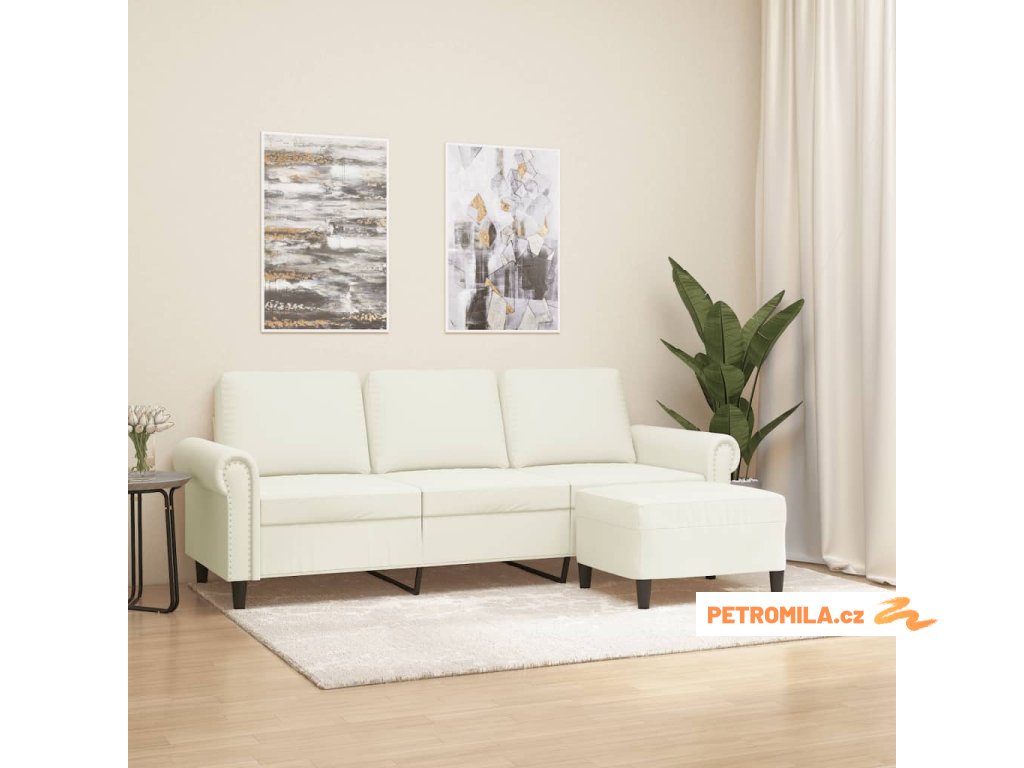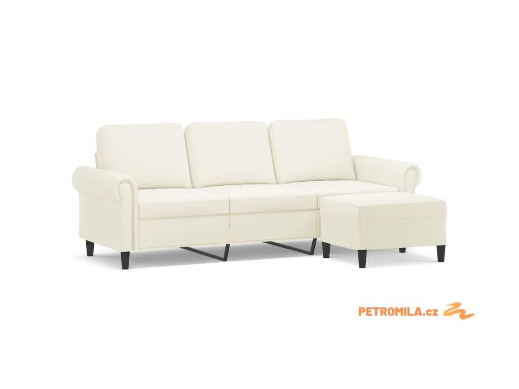 3místná pohovka s podnožkou krémová 180 cm samet